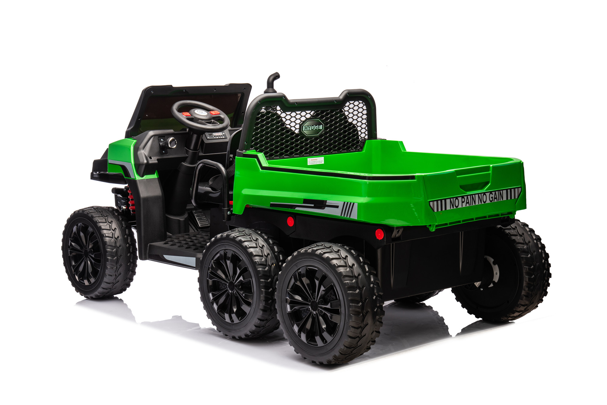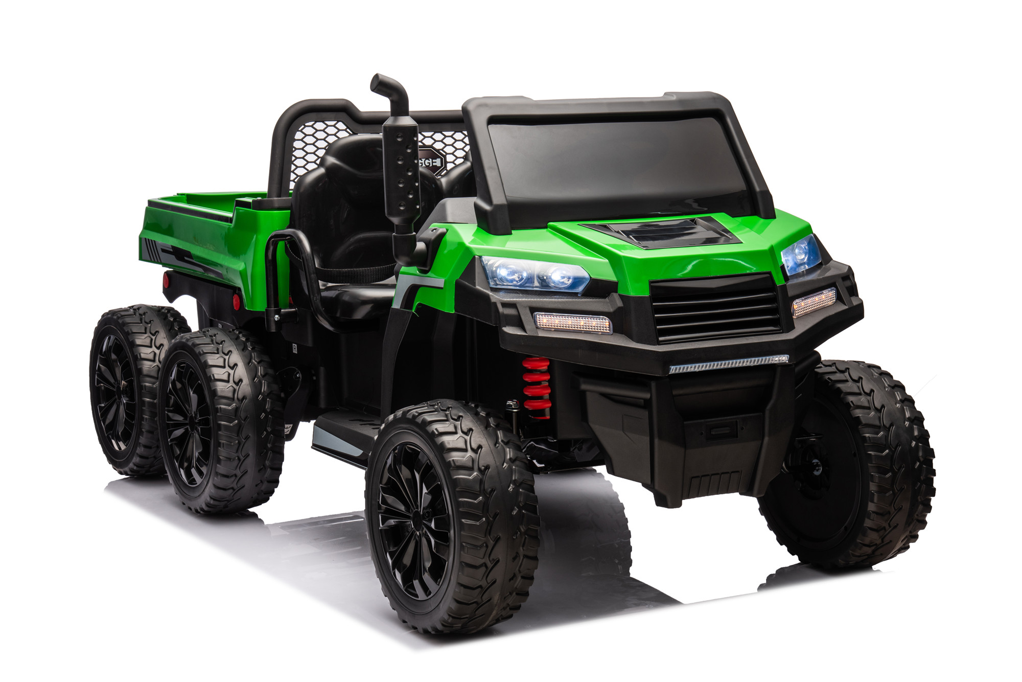 This 24V Two-seater Gator comes with six wheels for extra stability, a working tipping bed with a manual lifting function, and an openable tailgate. These functions, along with the large seat to accommodate two riders (60kg combined), makes this ride on car one of the most adventurous and engaging ride on car. With the power of 4 motors now, kids drive off-road confidently. With a wireless Parental remote controller, this ride on car offers endless fun and is an excellent way for parents to engage in play and connect with children. This ride on car also has realistic LED lights and an mp3 player with Bluetooth connectivity so kids can listen to their favourite music by connecting to their phone while cruising around in style.