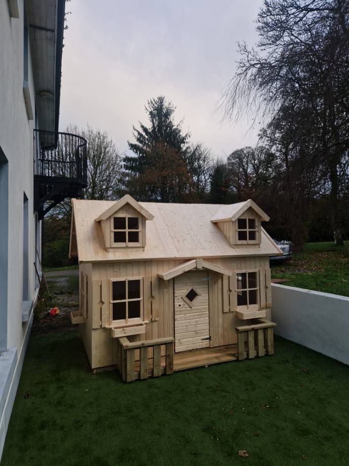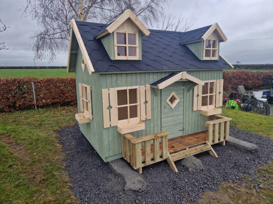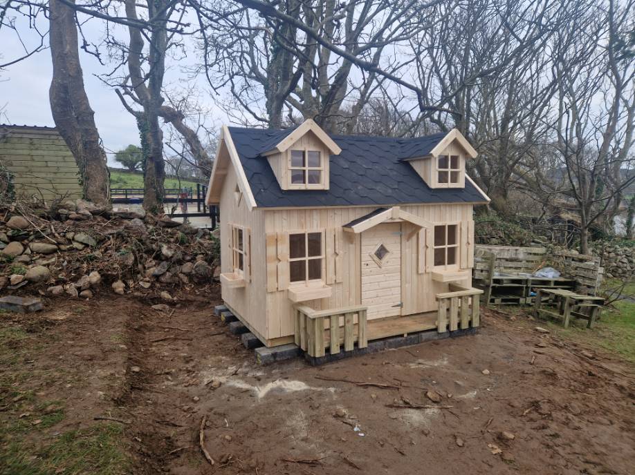 The May Playhouse is absolutely amazing! With a step ladder leading to an upstairs loft and lots of space for imaginative playtime, your little ones will have a blast. The realistic design, complete with dormer plexiglass windows on top and large windows on the bottom floor, adds to the charm. Your garden will definitely stand out with this beautiful addition! Let their imagination run wild as they transform the May Playhouse into whatever they want – a shop, restaurant, school or even their very own home! The possibilities are endless! Made from solid 16mm timber and featuring strong floor and roof boards, this playhouse is built to last. Plus, the included foundation beams provide added durability by lifting the structure off the ground. It’s a perfect space for years of fun and imagination with friends or siblings. If you need more information about buying or constructing the playhouse, just give us a call. We’re here to help!