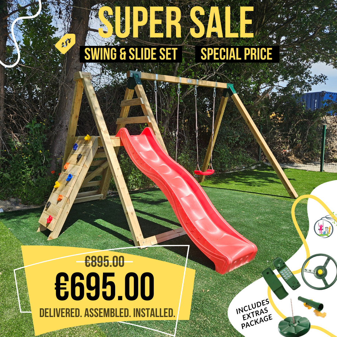 Transform your garden with our stunning Swing & Slide Set for just €695— delivery, assembly, and installation included! (Regular price: €895)