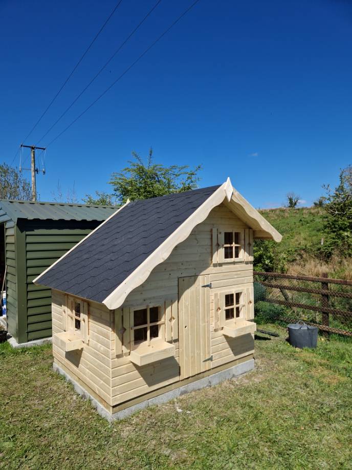 The Teddyย Kids Playhouse is like stepping into a fairy-tale world right in your own backyard. The playhouse has a two-story design, with an upstairs gallery for playing or chilling and a downstairs area for play, eating or even pretend cooking. The playhouse has charming details, like the chalet-style window and the steep Alpine-style roof. It’s even better that you can paint it to make it more personalized and cosy for the kids. The decorative shutters and window boxes give it a lovely touch, and the strong 16mm floor and roof boards ensure durability. Plus, the foundation beams lift it off the ground for added stability. It’s made of solid 16mm timber, and the walls are ready-made for easy self-build. A dream playhouse for any child!